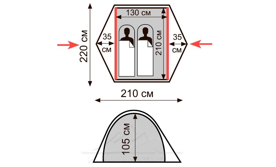 - можна встановити зовнішній тент без внутрішнього намету ,