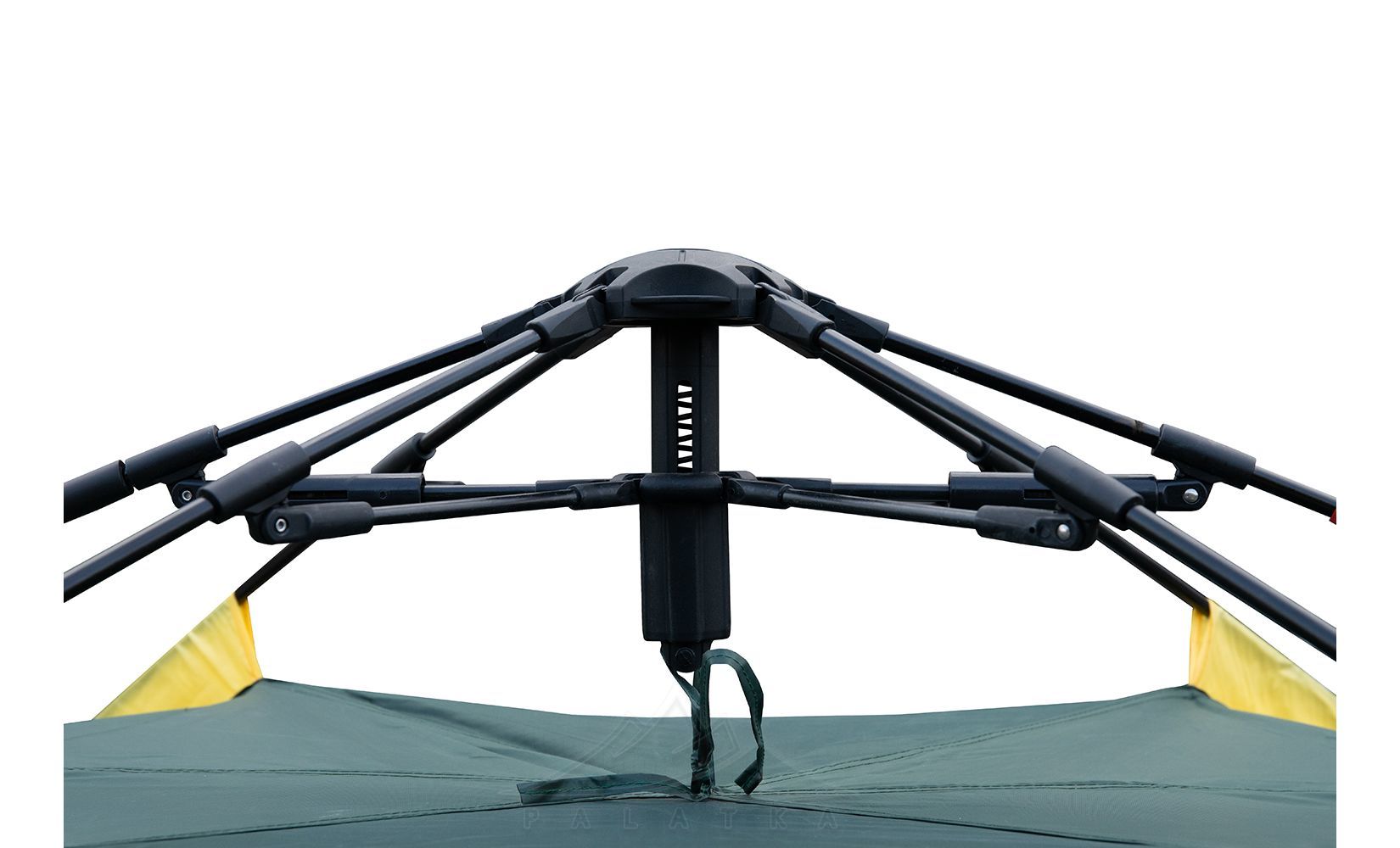 - Напівавтоматичний каркас полегшує встановлення намету — так само просто як відкрити парасольку. Каркас вже закріплений до тенту.