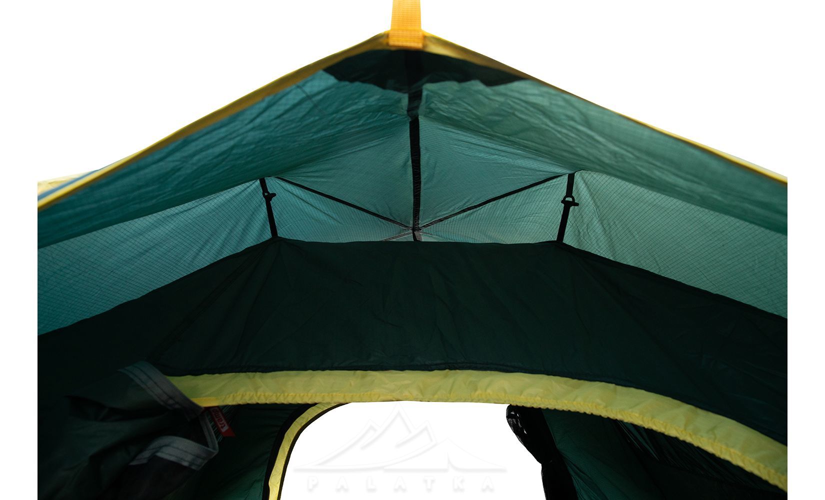 - Зовнішній тент з посиленого поліестеру Diamond RipStop з PU-просоченням, що надає тканині водостійкість 6000 мм H2O.