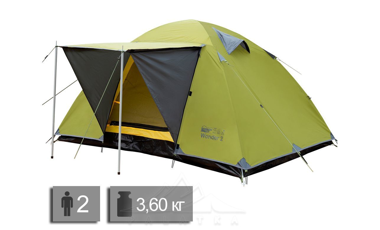 Намет Tramp UTLT-005 Wonder 2 — 2-місний намет для відпочинку на природі. Має 2 входи: з класичним тамбуром та навісом-козирком.