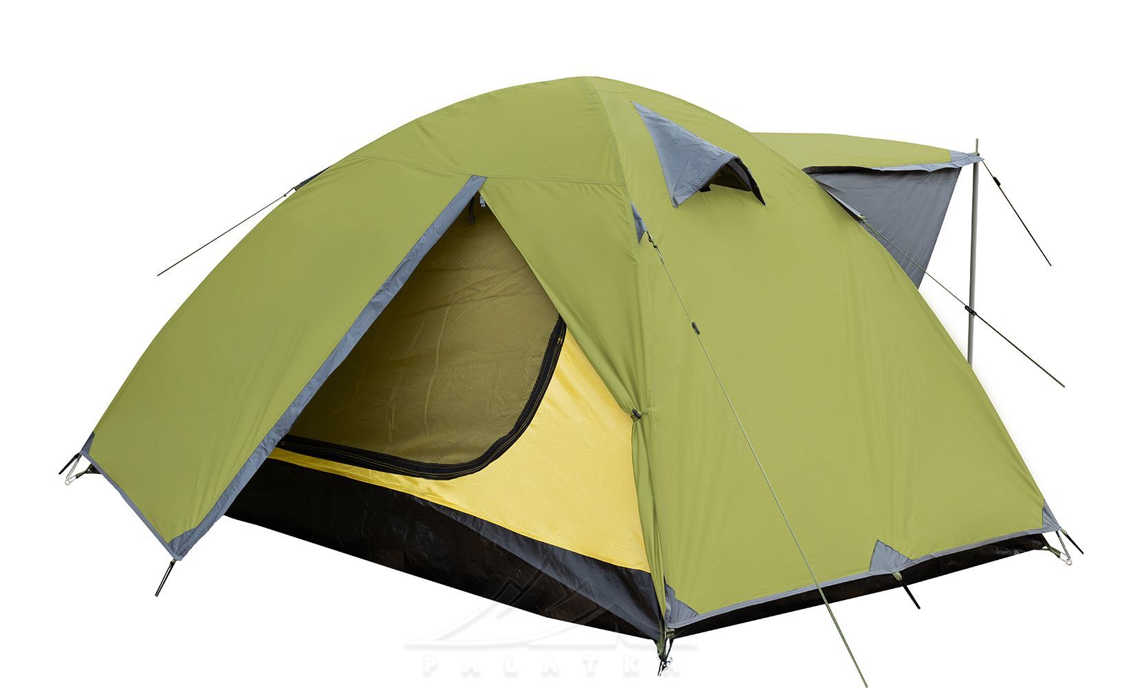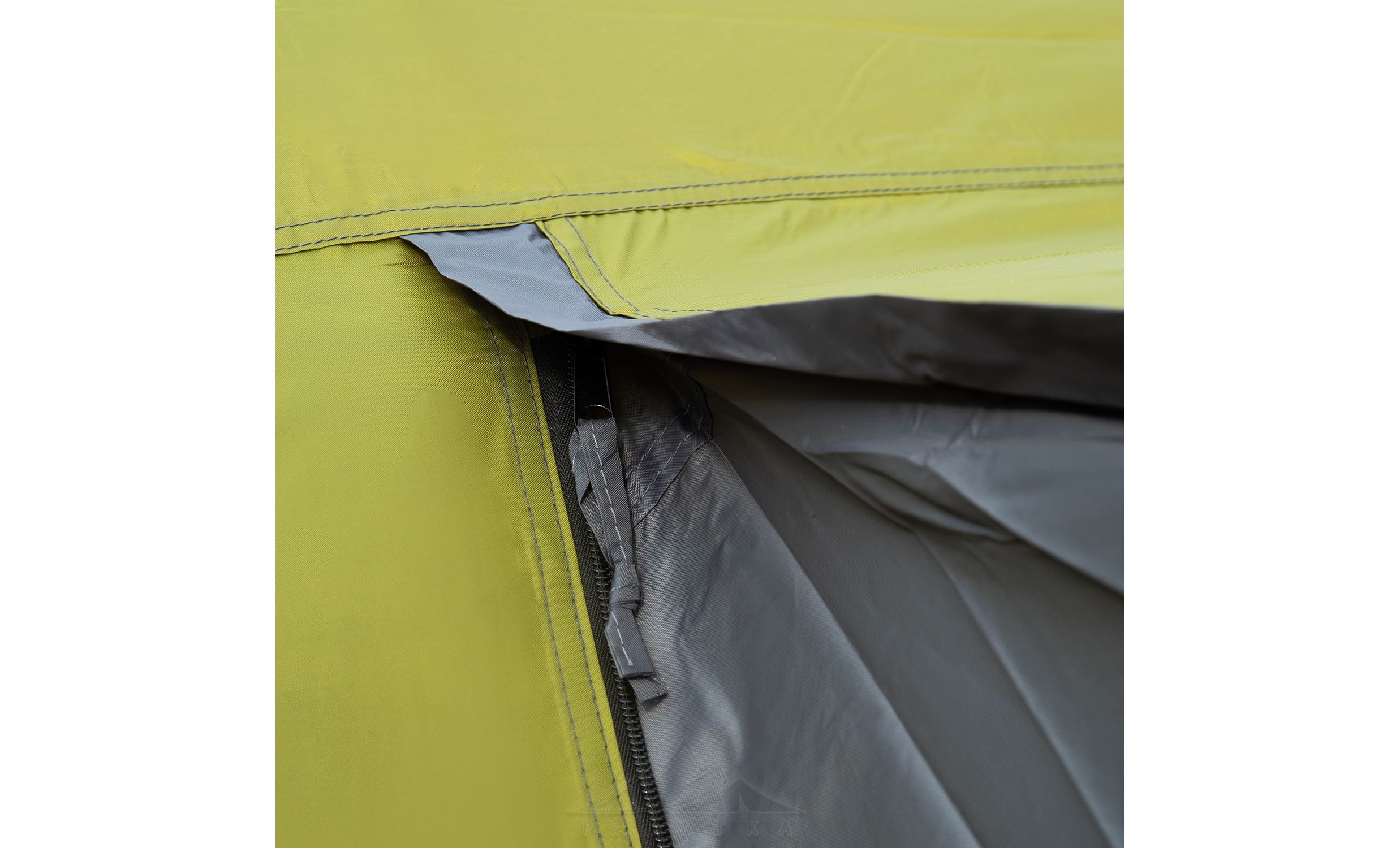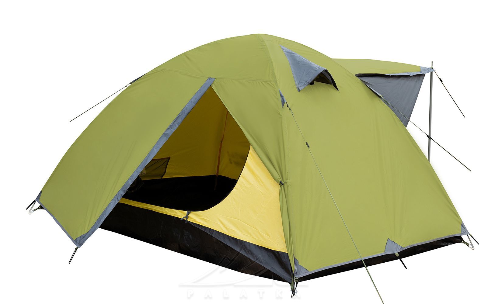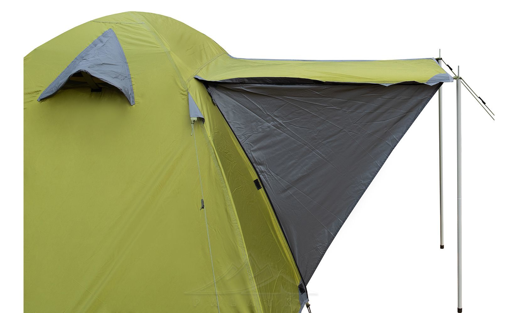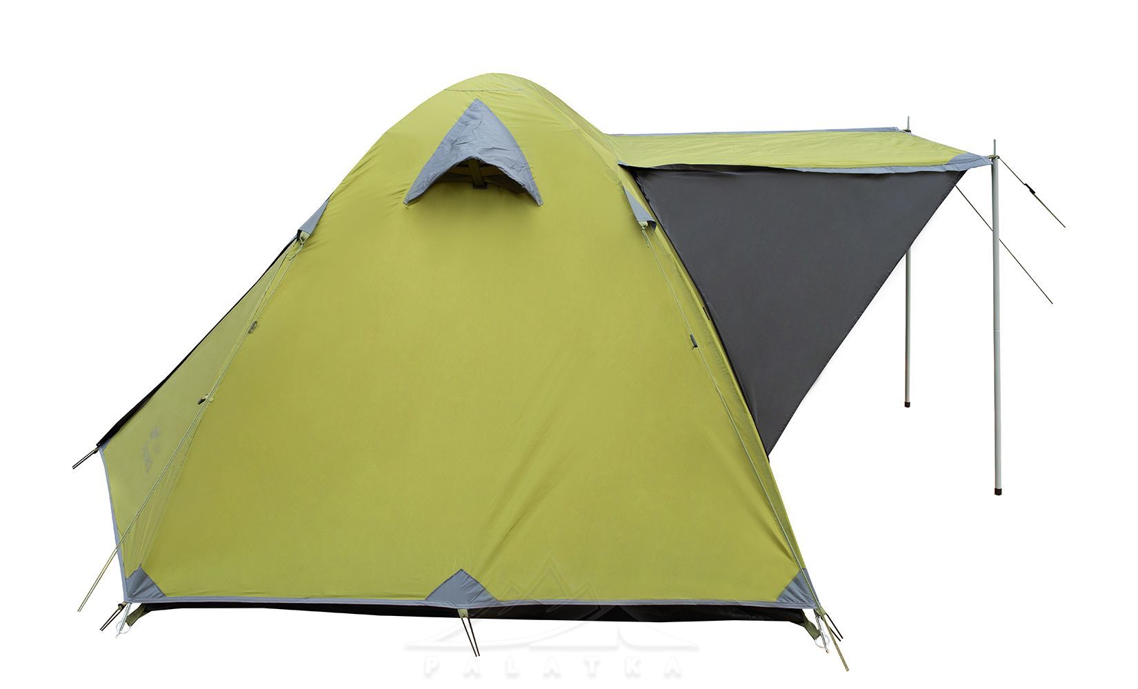 • Окремий вхід з навісом (без тамбуру), який можна використовувати як велике вікно для провітрювання намету.