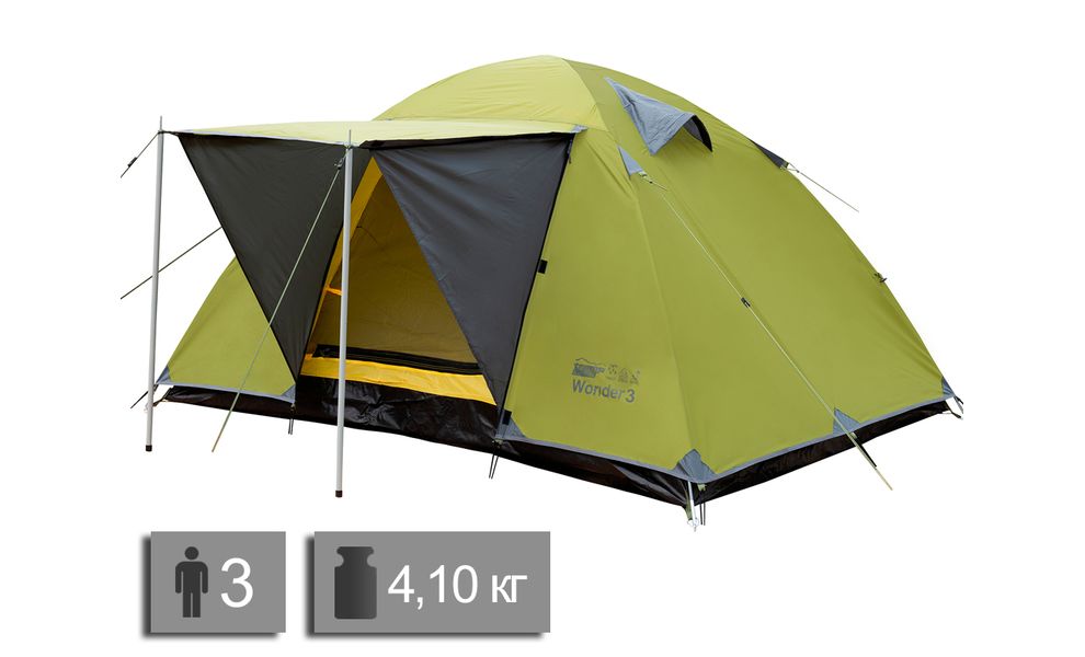 Намет Tramp UTLT-006 Wonder 3 — 3-місний намет для відпочинку на природі. Має 2 входи: з класичним тамбуром та навісом-козирком.