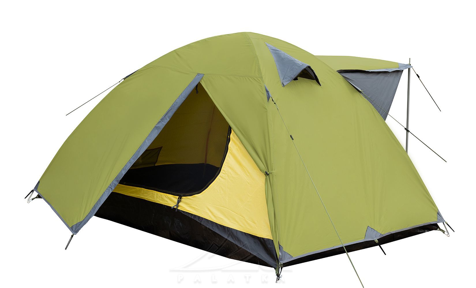 - Окремий вхід з навісом (без тамбуру), який можна використовувати як велике вікно для провітрювання намету.