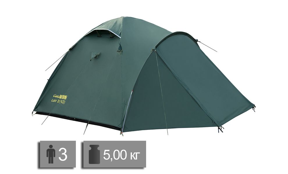 Намет Tramp TRT-039 Lair 3 v2 — універсальний 3-місний намет для туристичних походів чи відпочинку на природі. Збільшений тамбур з окремою несучою дугою. Простора спальня. Швидке встановлення.