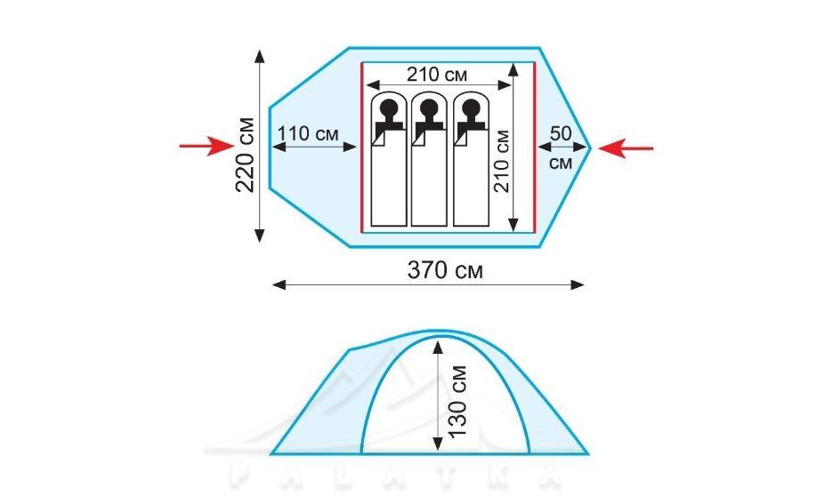 - Збільшений основний тамбур (з додатковою дугою) для розміщення спорядження та взуття, чи навіть для організації кухні під час негоди.