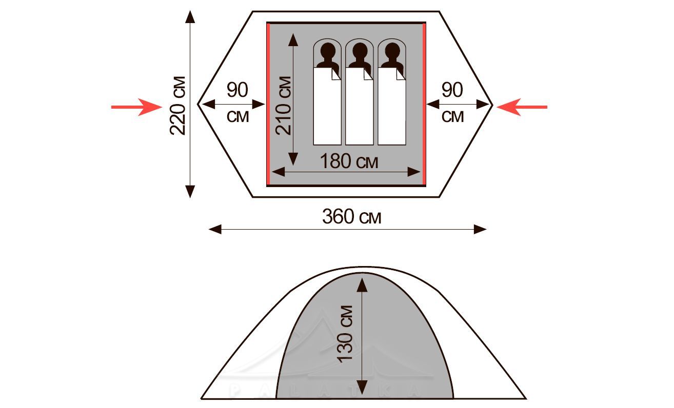 - 2 тамбури збільшеного корисного об'єму з додатковою напівдугою: для розміщення спорядження, взуття чи готування їжі за негоди