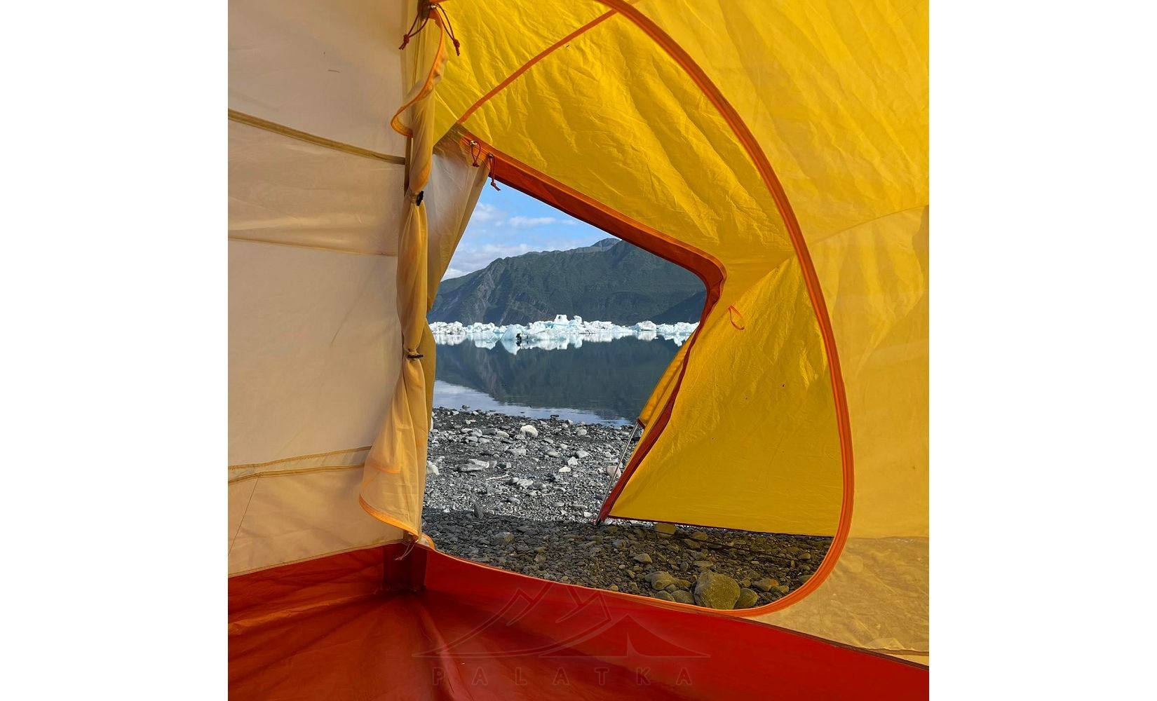 - Місткість: 3-місний двошаровий намет купольного типу, з розширеним тамбуром із акцентом на комфорт у таборі.