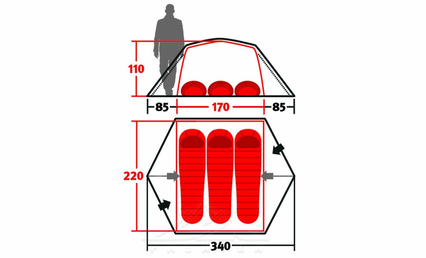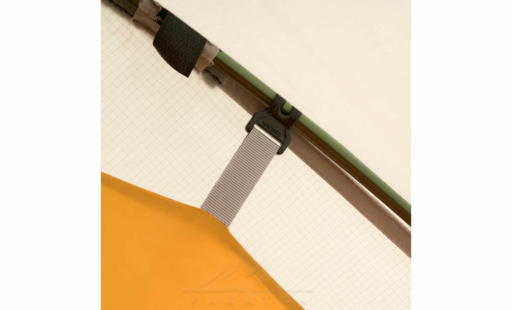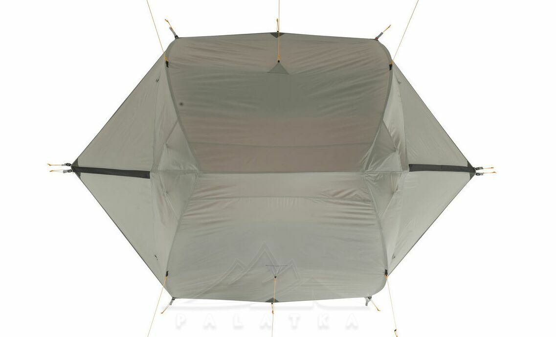 - Модульність для літа: з футпринтом (не входить в комлект) можна ставити лише тент без внутрішньої спальні — як легкий погодний захист у теплі літні ночі.