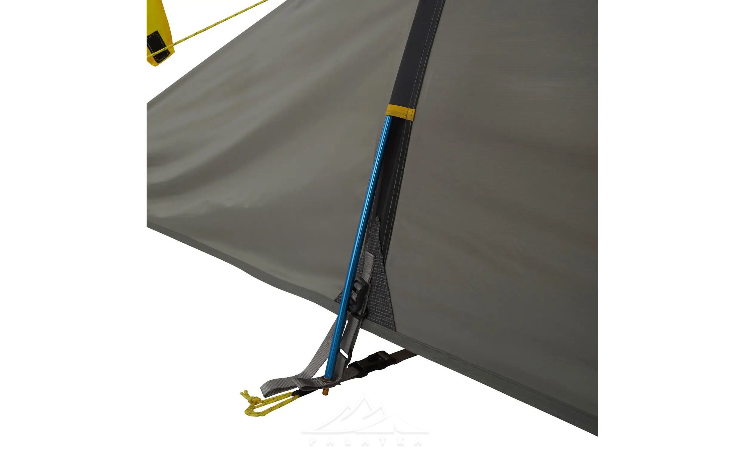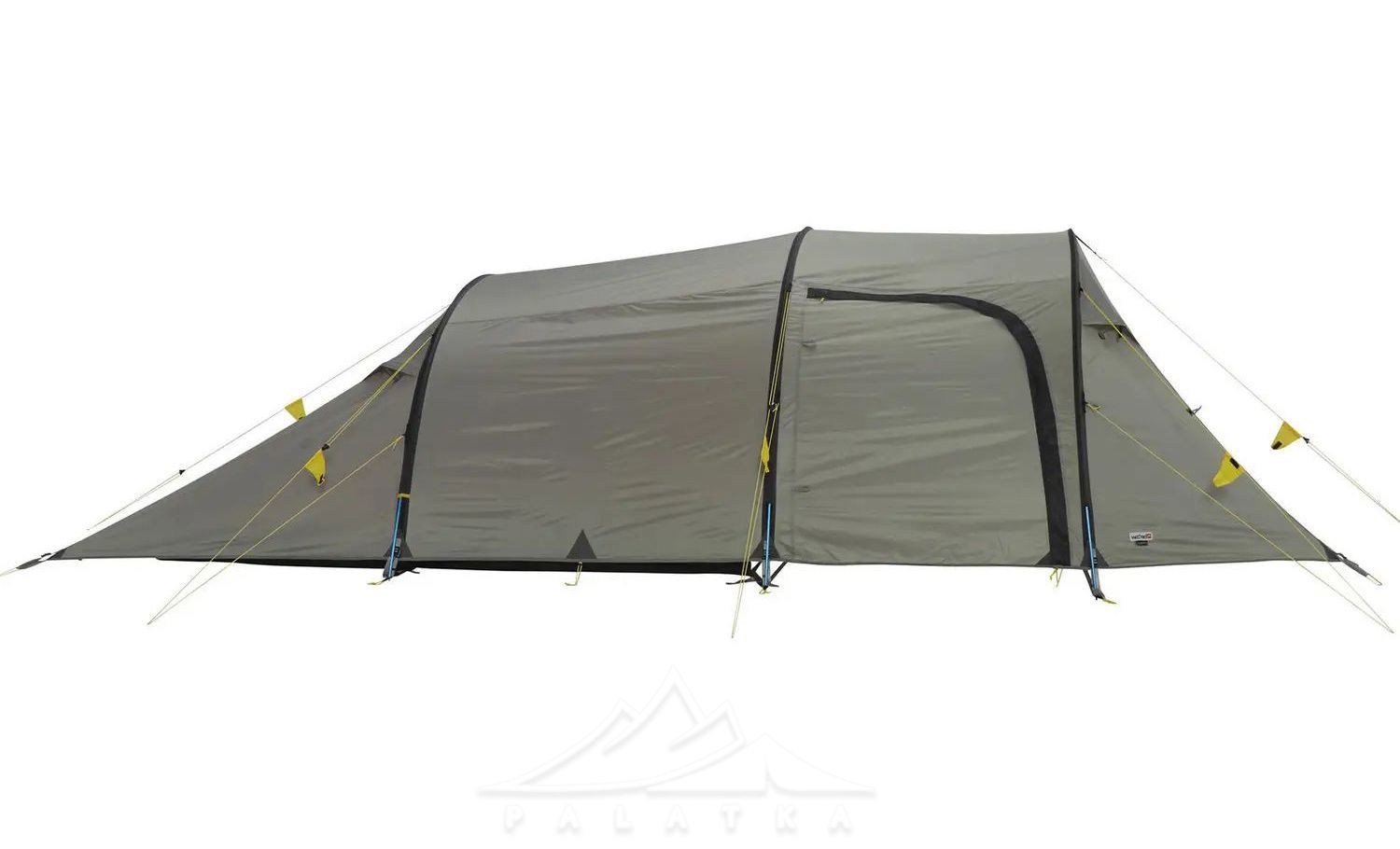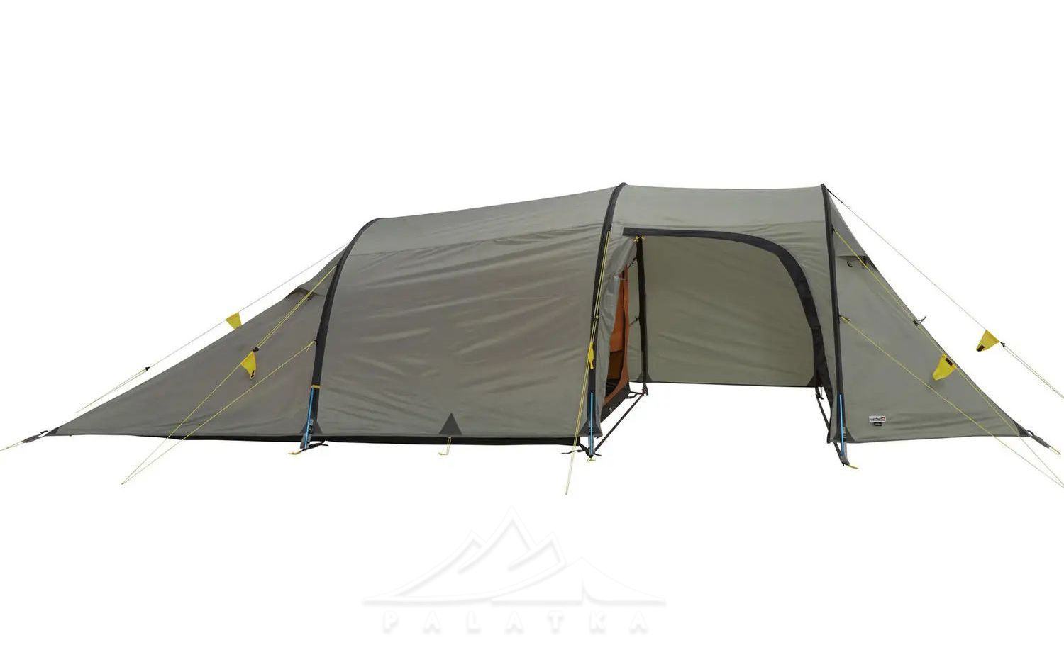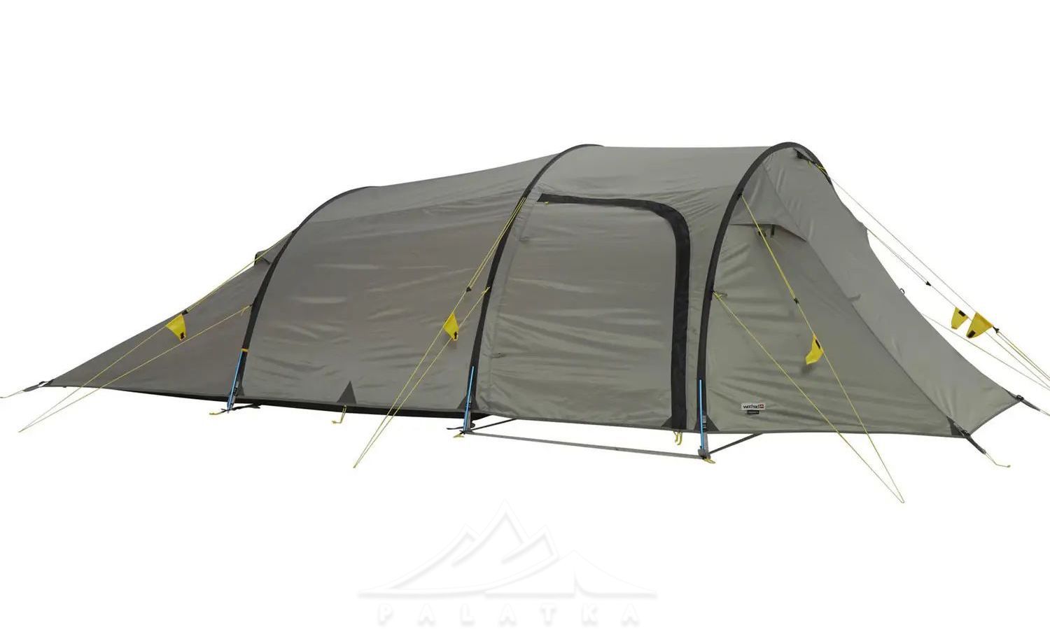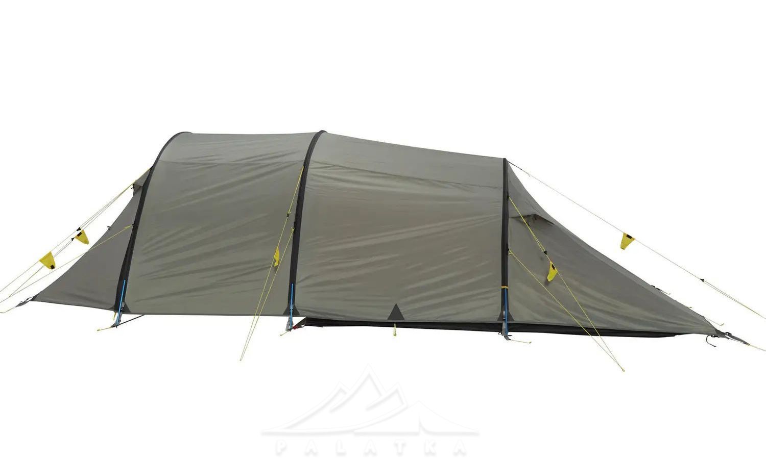 - Конструкція: тунельна. Тунельний формат — класика універсальних наметів: дає стабільну геометрію та хороший внутрішній об’єм, який комфортний і для кемпінгу, і для трекінгових базових стоянок.
