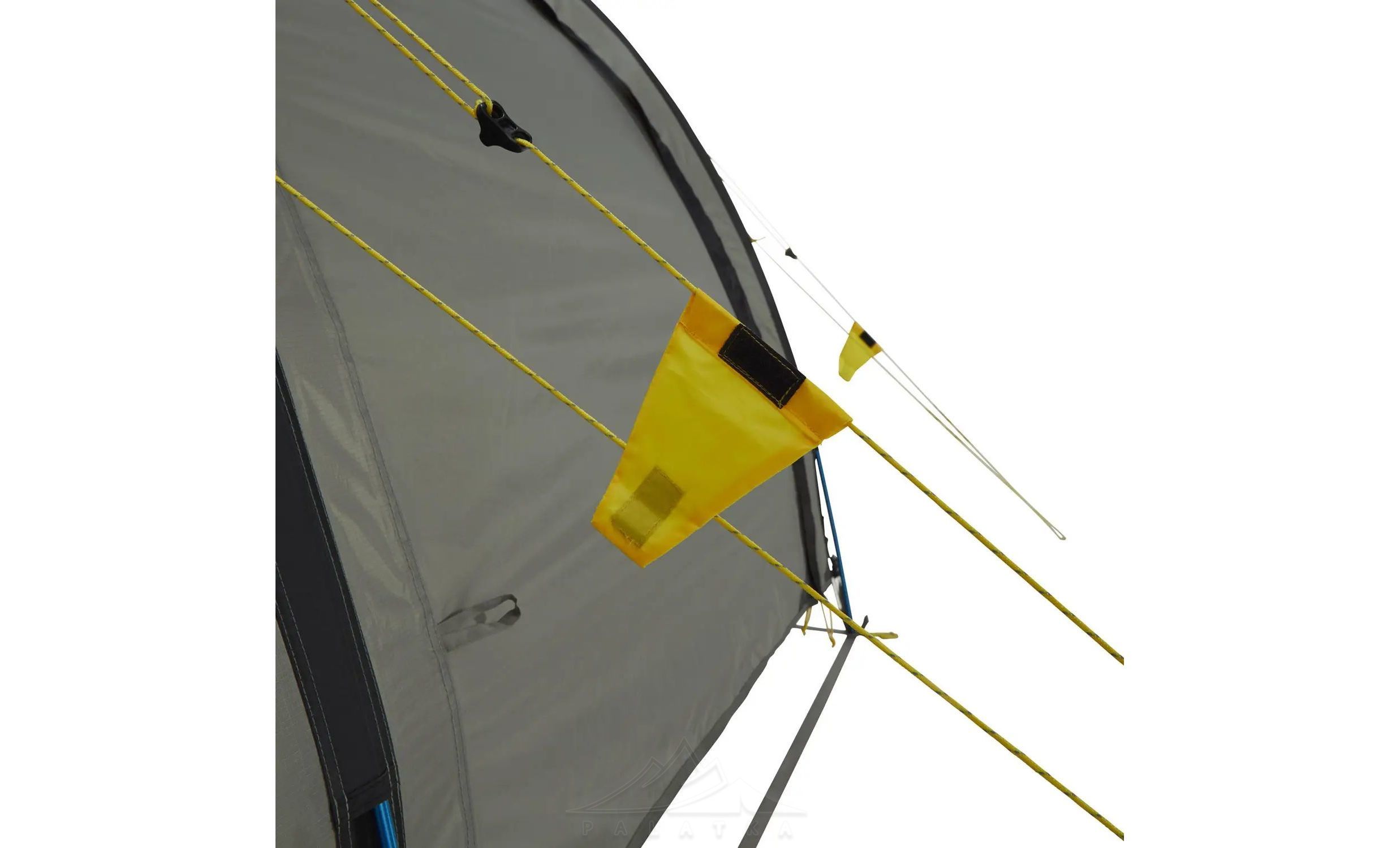 - Відтяжки та видимість вночі: відтяжки світловідбивні, з лайнлоками для натягу й прапорцями, щоб їх було видно (і менше шансів перечепитися).