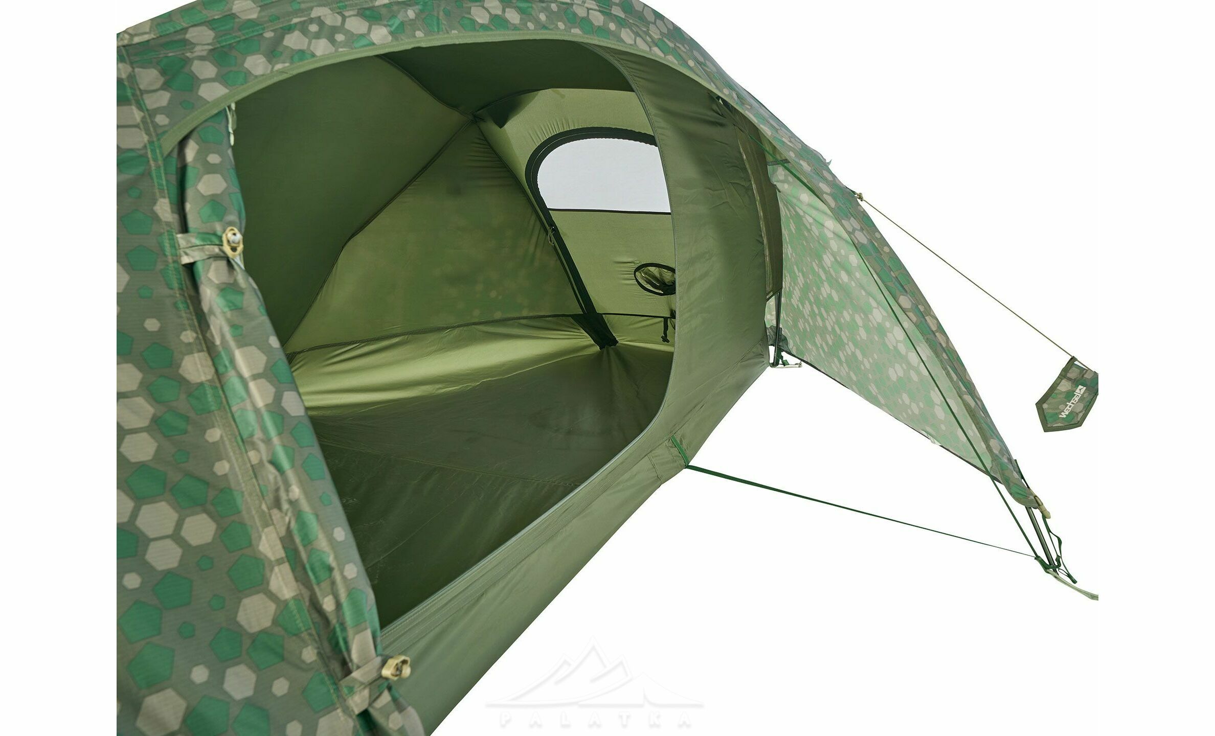 - Посилена вітростійкість за рахунок кріплення каркасу через кишені на внутрішньому наметі. Такий спосіб дає більш жорстку "геометрію" спальні та кращий натяг — менше шансів на провисання під поривами вітру (і менше шуму/тертя тканини).