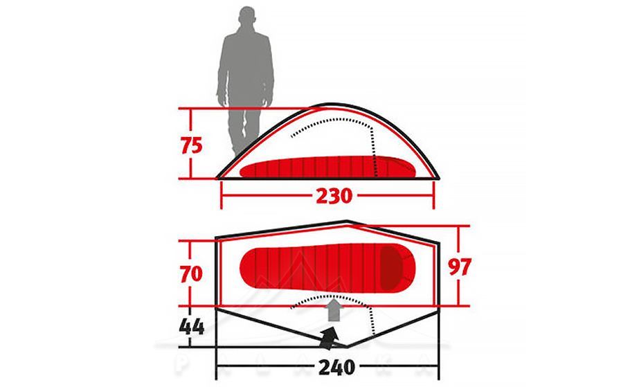 - Вільностояча конструкція разом із тамбуром: можна ночувати там, де не завжди є сенс/можливість нормально закріпитися кілочками (твердий ґрунт, каміння тощо).