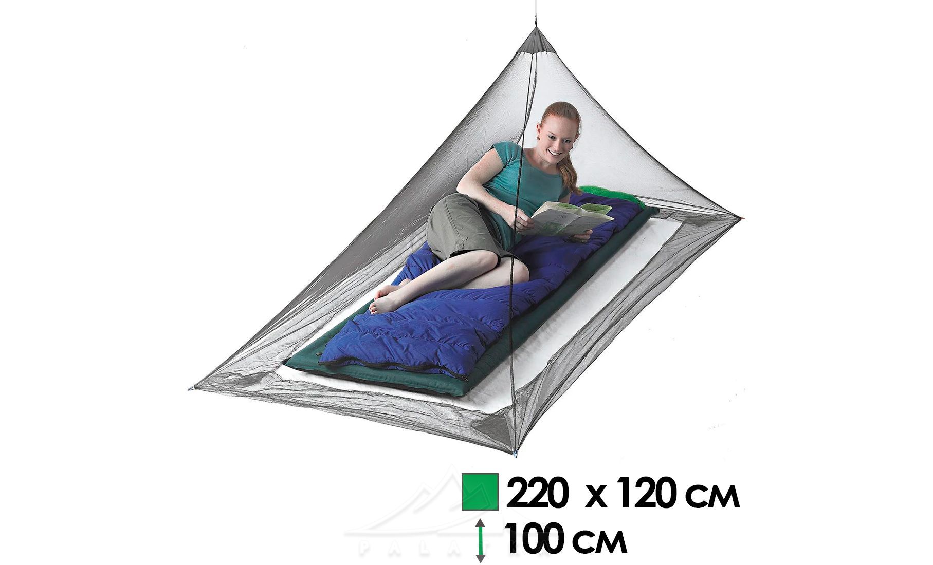 Москітна сітка Sea to Summit Mosquito Pyramid Nano — сітка у формі піраміди з асиметричною точкою підвісу, розрахована на одне спальне місця. Стане в нагоді як вдома, так і в поході для захисту спального місця від проникнення комах, що кусають.