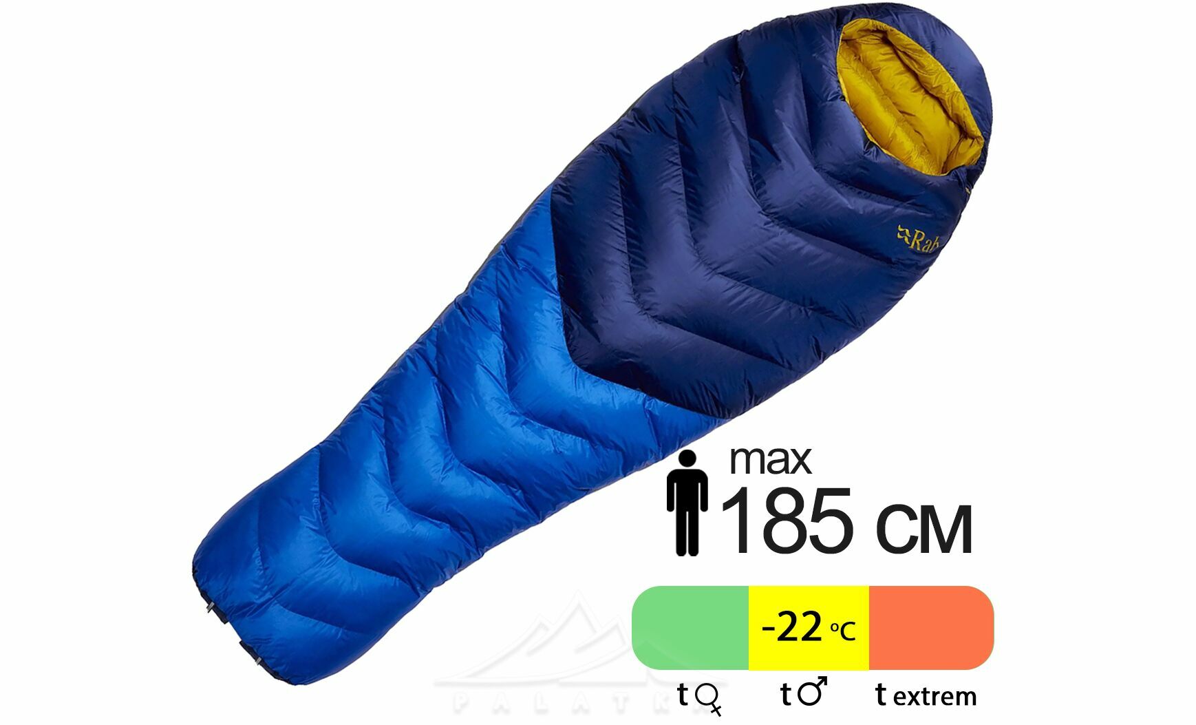 - Походження: спальник наповнюється вручну у Великій Британії, пух ніколи не стискається перед використанням, що гарантує його максимальну теплоізоляцію.