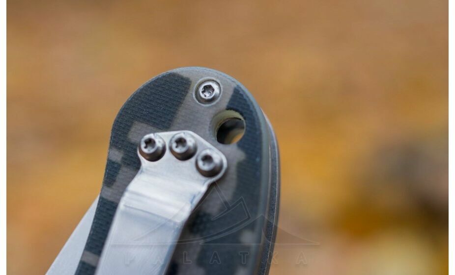 - Руків'я має кліпсу для кріплення ножа на ремені або кишені.
