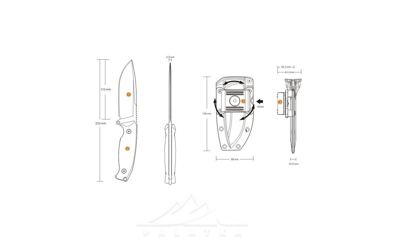 - Для зручного транспортування комплектується піхвами з кліпсою для кріплення на поясі, або іншому туристичному спорядженні.
