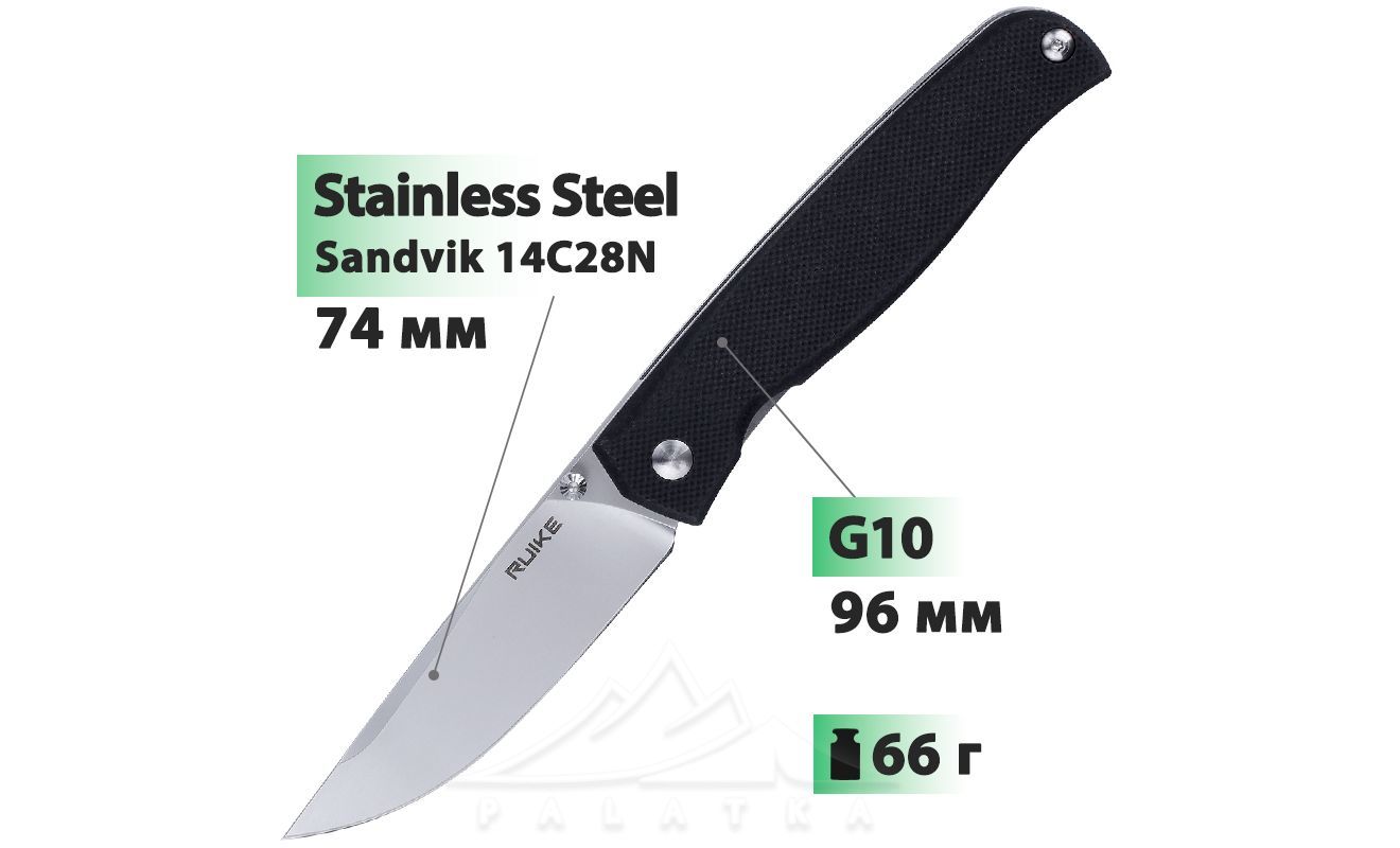 Ніж Ruike P661 — складний ніж з гладким лезом для щоденного використання. Підійде для як для виконання побутових робіт, так і для використання під час походу, кемпінгу, риболовлі або мисливства.