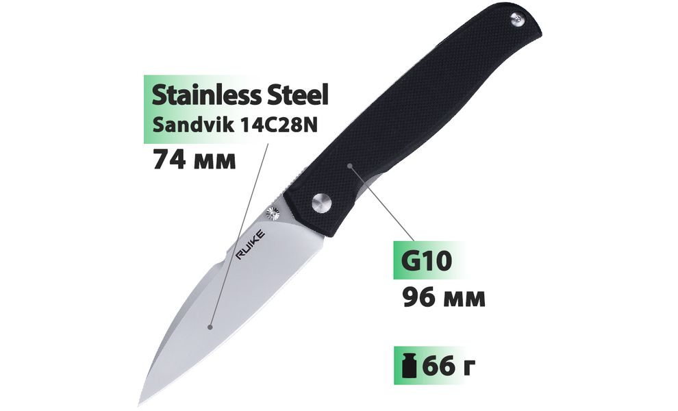 Ніж Ruike P662 — складний ніж з гладким лезом для щоденного використання. Підійде для як для виконання побутових робіт, так і для використання під час походу, кемпінгу, риболовлі або мисливства.