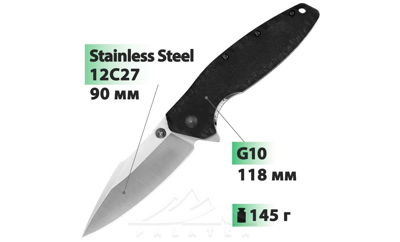 • На руків'ї має кліпсу для кріплення ножа на ремені або кишені.