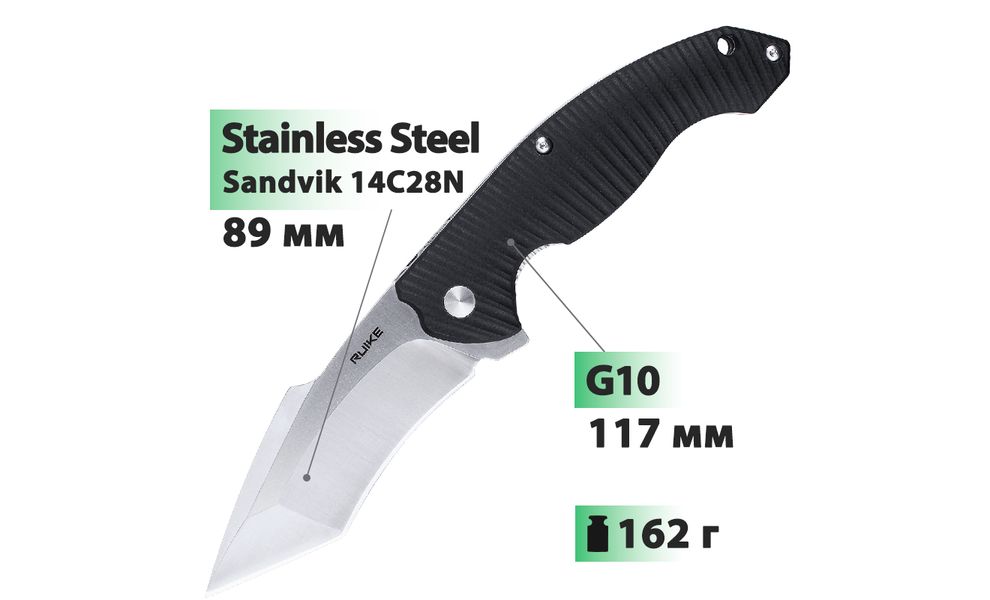 Ніж Ruike P12 — складний ніж з гладким лезом, підійде для як для виконання побутових робіт, так і для використання під час походу, кемпінгу, риболовлі або мисливства.