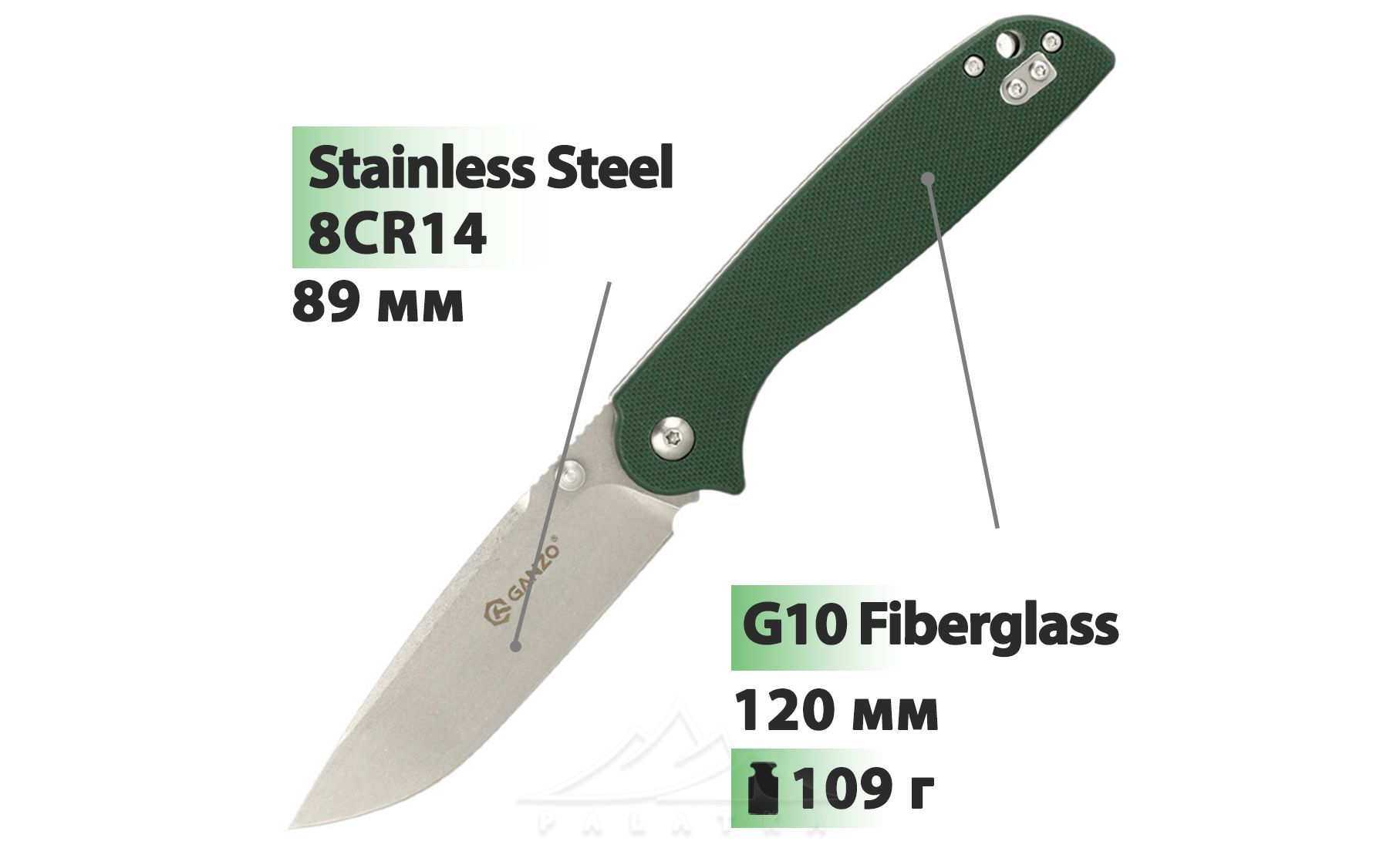 - Форма леза — Clip Point, загострена форма, якою зручно як наколювати, так і різати.