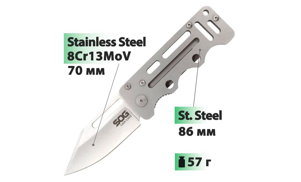 Ніж SOG Cash Card — кишеньковий складний ніж, який можна використовувати як затискач грошей. Підійде для щоденного використання в побуті.
