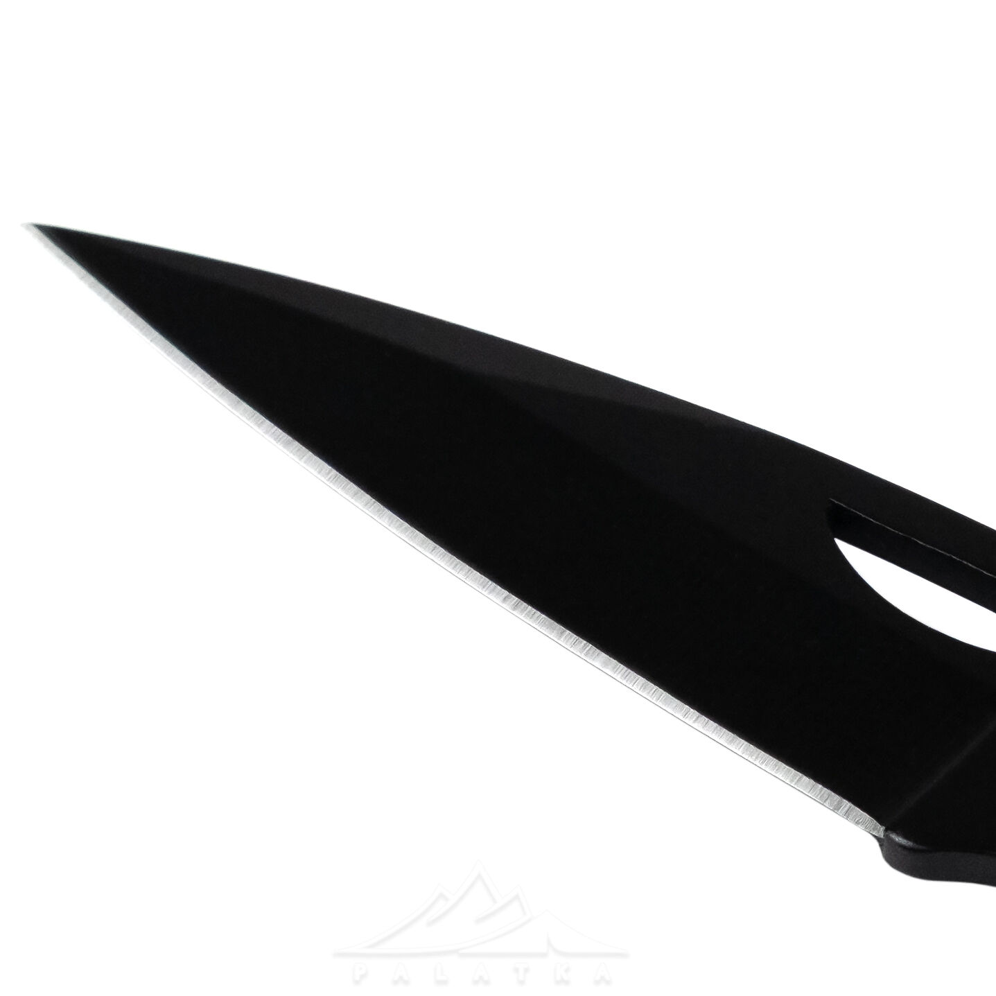 - Лезо виготовлене з нержавіючої сталі 420 — стійка до корозії, довго тримає заточку та легко підточується.