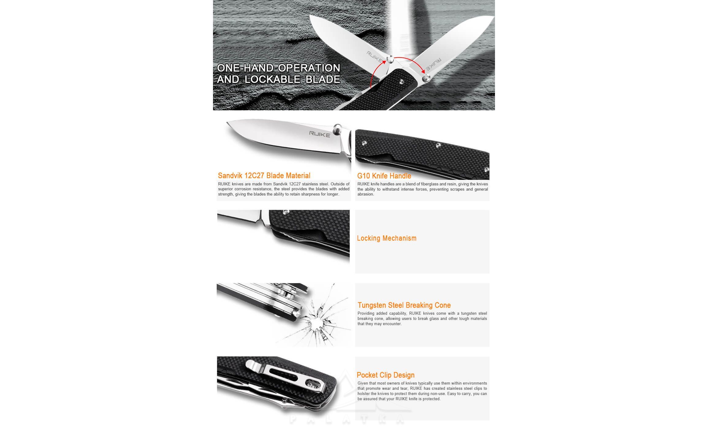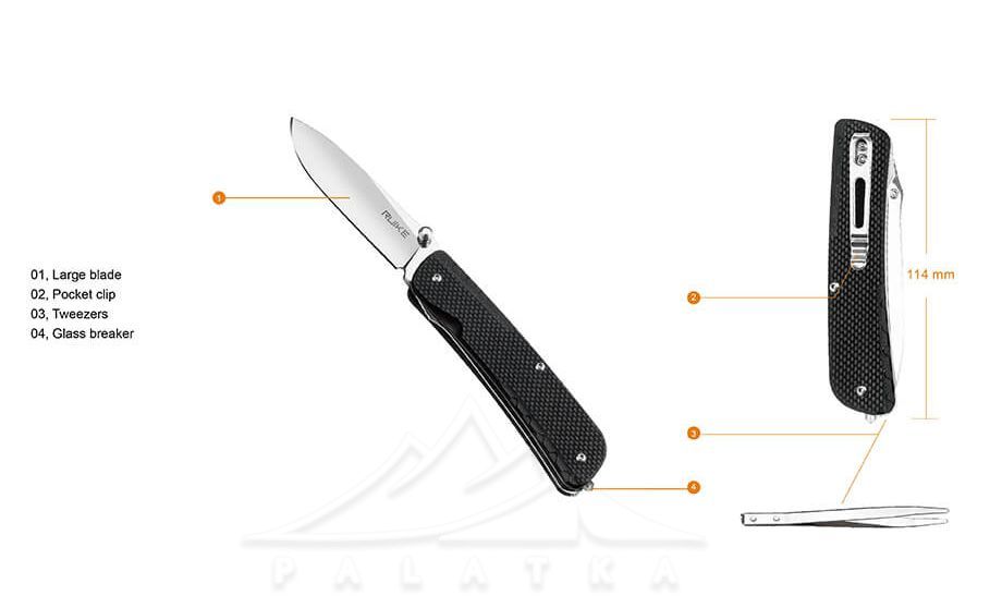 Ніж Ruike LD11 — складний ніж з гладким лезом для щоденного використання. Підійде для як для виконання побутових робіт, так і для використання під час походу, кемпінгу, риболовлі або мисливства.