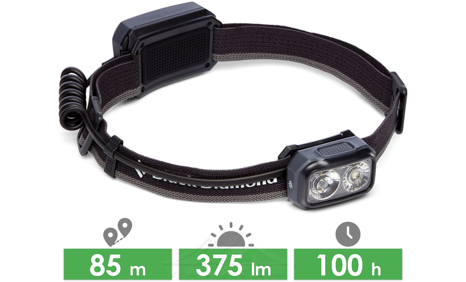 Налобний ліхтар Black Diamond OnSight 375 — це знахідка для кожного альпініста. Він ідеально підійде для сходження на вершини і допоможе орієнтуватися у просторі навіть після заходу сонця. Ліхтар має гібридний тип живлення. Він здатен працювати як від батарейок (в комплекті), так і від акумулятора (купується окремо). Світло цього ліхтаря має 3 рівні яскравості, які плавно регулюються, режими строб та SOS, а також розсіяне світло та сфокусований промінь.