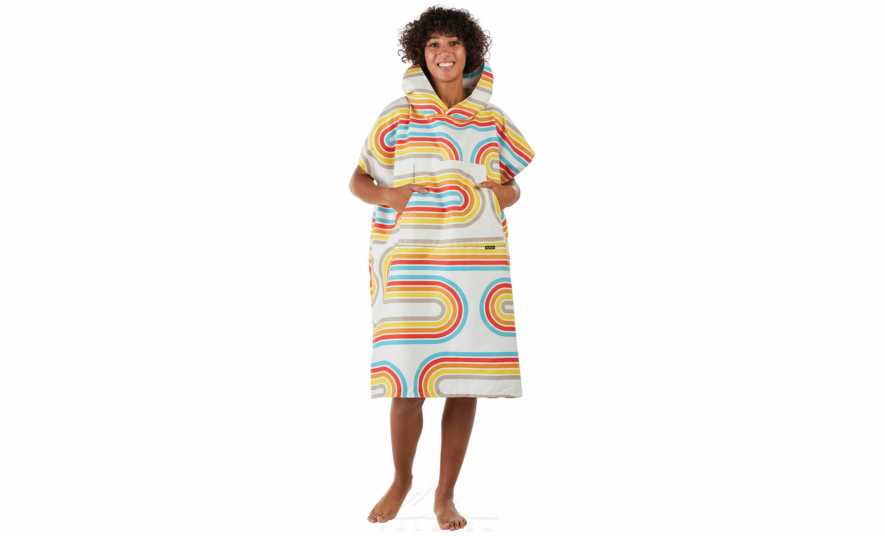 • Просторий крій пончо забезпечує комфортне переодягання в будь-якому місці — на пляжі, біля озера чи після тренування.