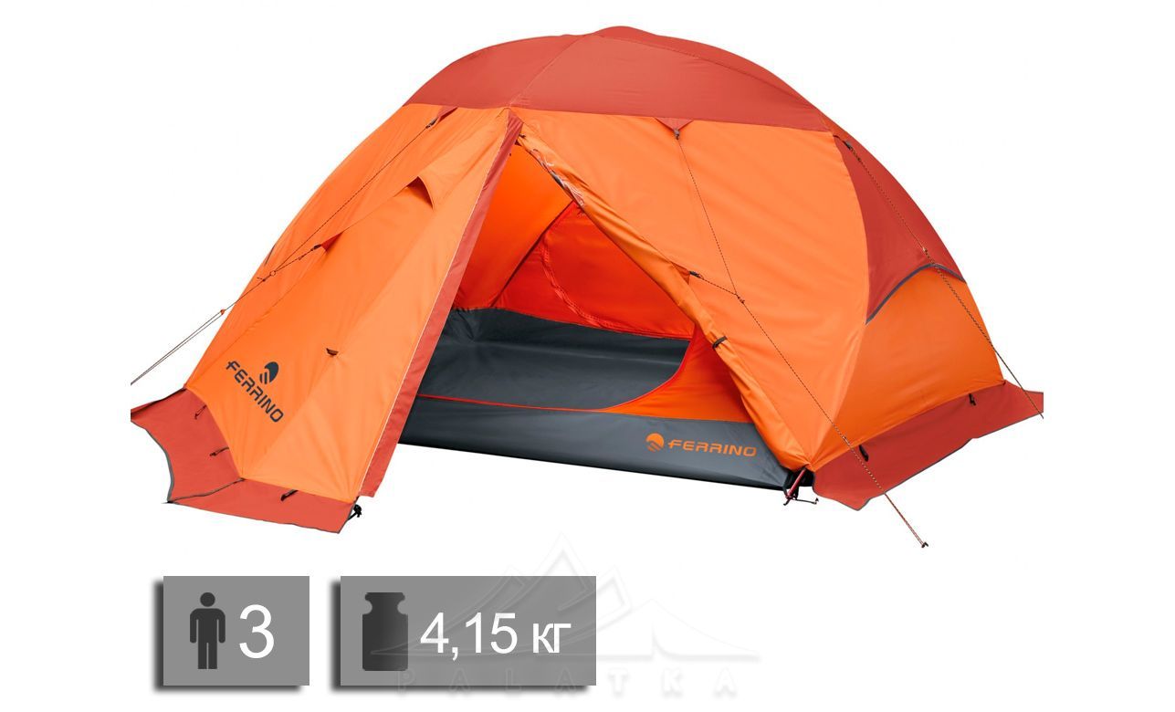 Намет Ferrino Svalbard 3.0 — 3-місний експедиційний намет з 2-ма входами та 2-ма тамбурами. Має збільшений корисний простір спальні та тамбурів та снігозахисну спідницю. Для 4-сезонного використання.