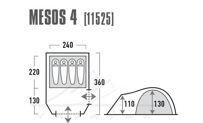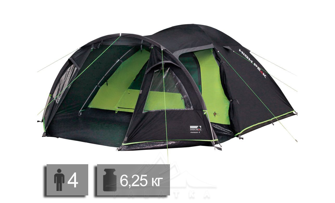 Намет High Peak Mesos 4 — 4-місний туристичний намет для кемпінгу та відпочинку на природі. Має збільшений тамбур з підлогою та 1 вхід до спальні.