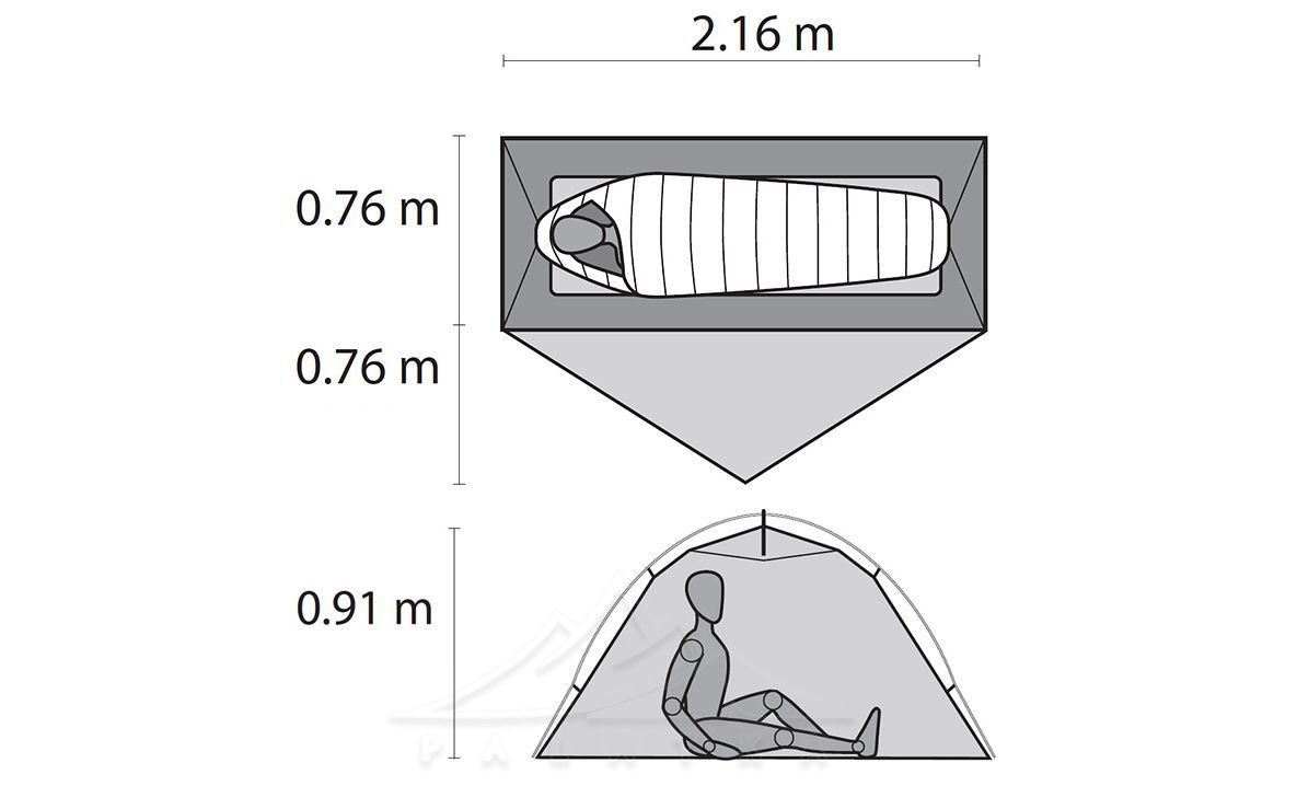 - Стінки внутрішнього намету виконані з комбінації посиленого нейлону (20D Nylon RipStop) та мілкої сітки (15D Nylon Micromesh) для полегшеня ваги, захисту від комах та гарної вентиляції.