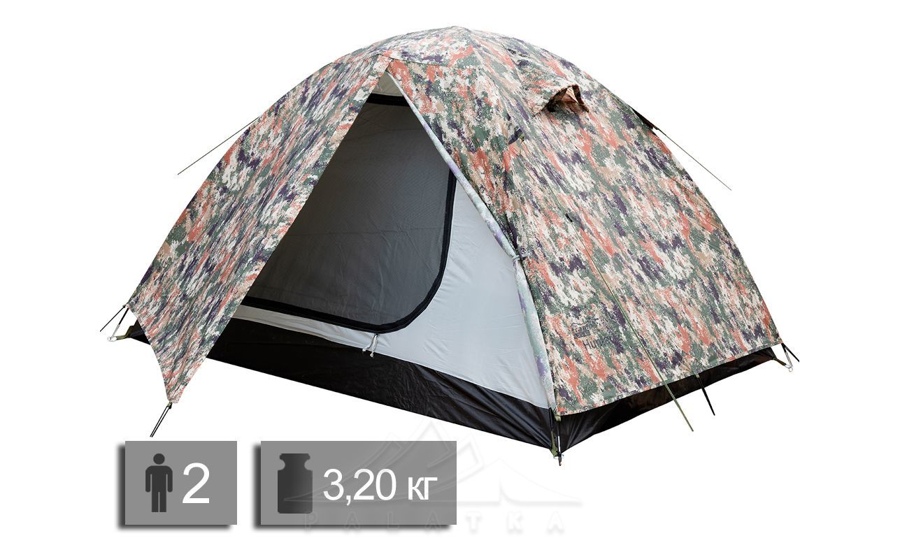 Намет Tramp UTLT-008 Hunter 2 — 2-місний намет для пішого туризму, риболовлі, полювання чи подорожей. Камуфляжне забарвлення. 2 входи та 2 тамбури.