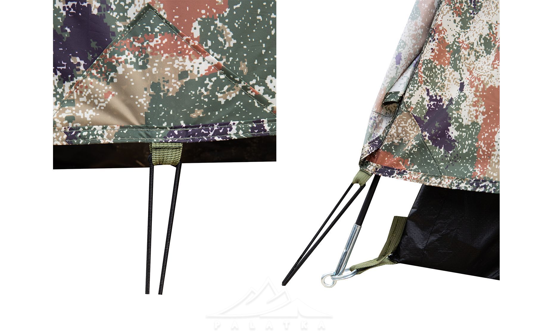 - Підлога внутрішнього намету з армованого тарпаулінга (PE), водостійкістю 10 000 мм H2O