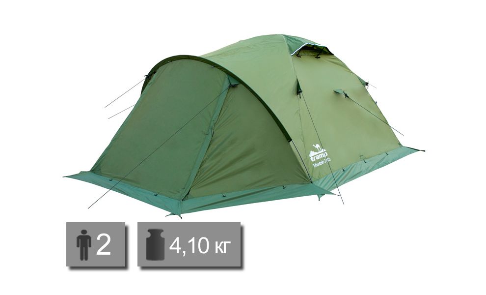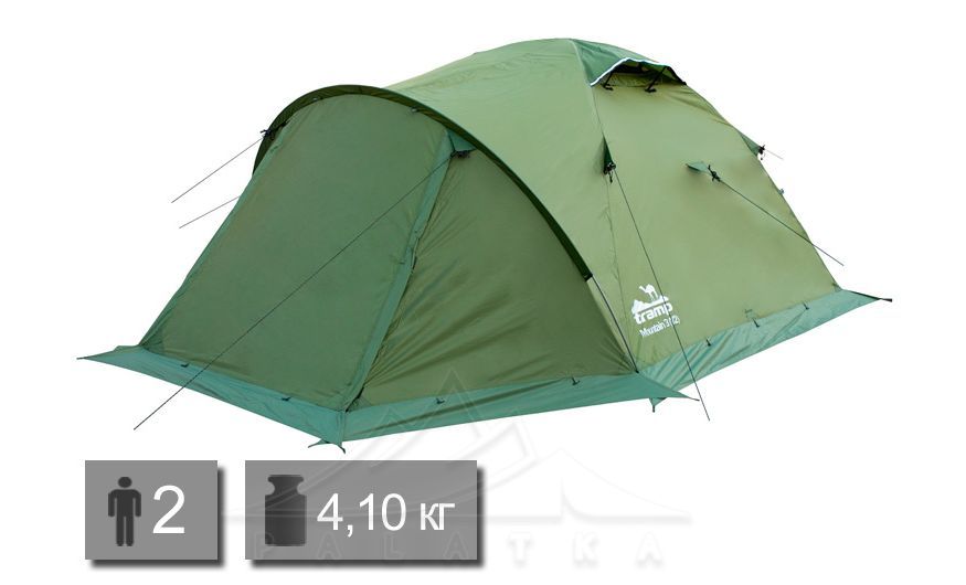 Намет Tramp UTRT-022 Mountain 2 v2 — всесезонний 2-місний намет для туристичних походів. Має збільшений тамбур та 2 входи в спальню.