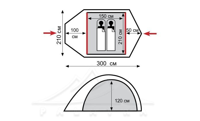 - Сніго- та вітрозахисна спідниця по всьому периметру зовнішнього тенту