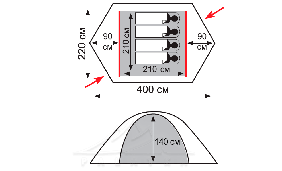 - Сніго- та вітрозахисна спідниця по всьому периметру зовнішнього тенту