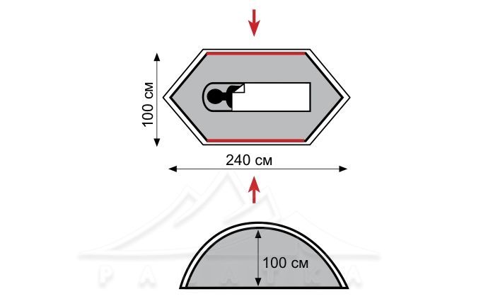 • Зовнішній тент з посиленого поліестеру (RipStop) з PU-просоченням, водостійкістю 6 000 мм H2O