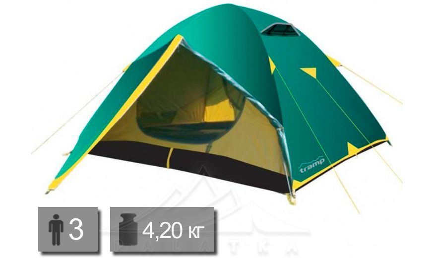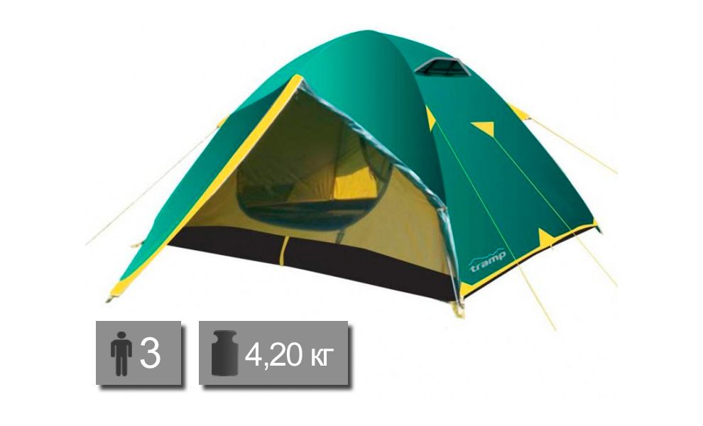 Намет Tramp TRT-054 Nishe 3 V2 — універсальний 3-місний намет для туристичних походів. Збільшений корисний об'єм тамбура. Простора спальня. Просте та швидке встановлення.