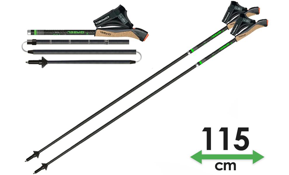 Gabel FLD Carbon — ультралегкі 4-секційні карбонові палиці фіксованої довжини, що компактно складаються для зручного транспортування. Відносяться до серії Performance — розроблені для спортсменів, інструкторів, підходять для регулярних занять.