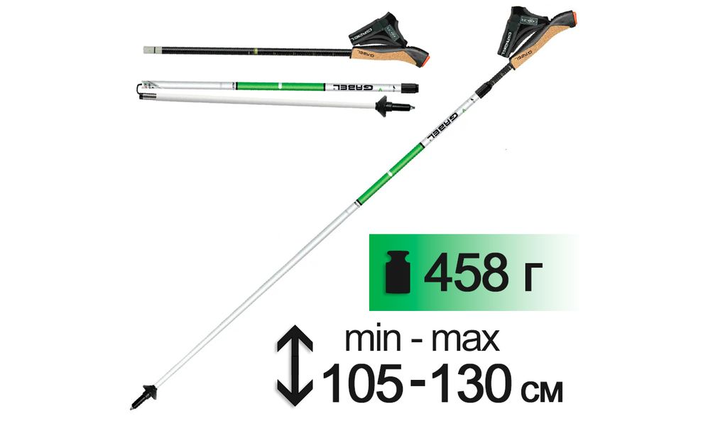 Палиці для скандинавської ходьби Gabel Nordic Revo Alu-Tech — 3-секційні алюмінієві палиці з регульованою довжиною. Відносяться до серії Performance — розроблені для спортсменів, інструкторів, підходять для регулярних занять.