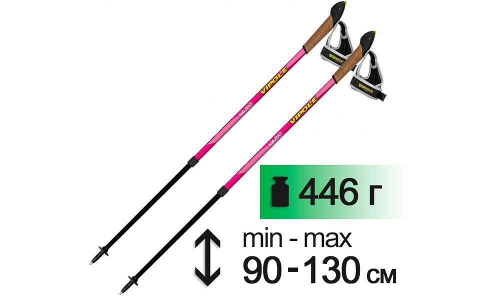 Vipole Vario Novice — легкі та міцні алюмінієві 2-секційні палиці з регульованою довжиною. Модель підійде для новачків.