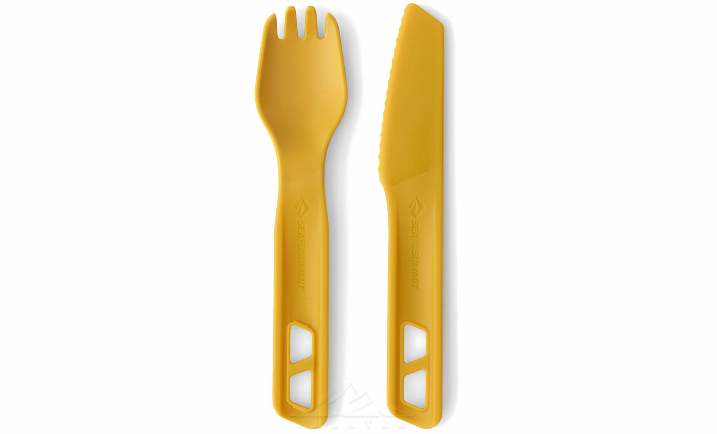 Туристичний набір пластикових столових приборів Sea to Summit Passage - 2 предмети (Arrowwood Yellow): ложка-виделка, ніж