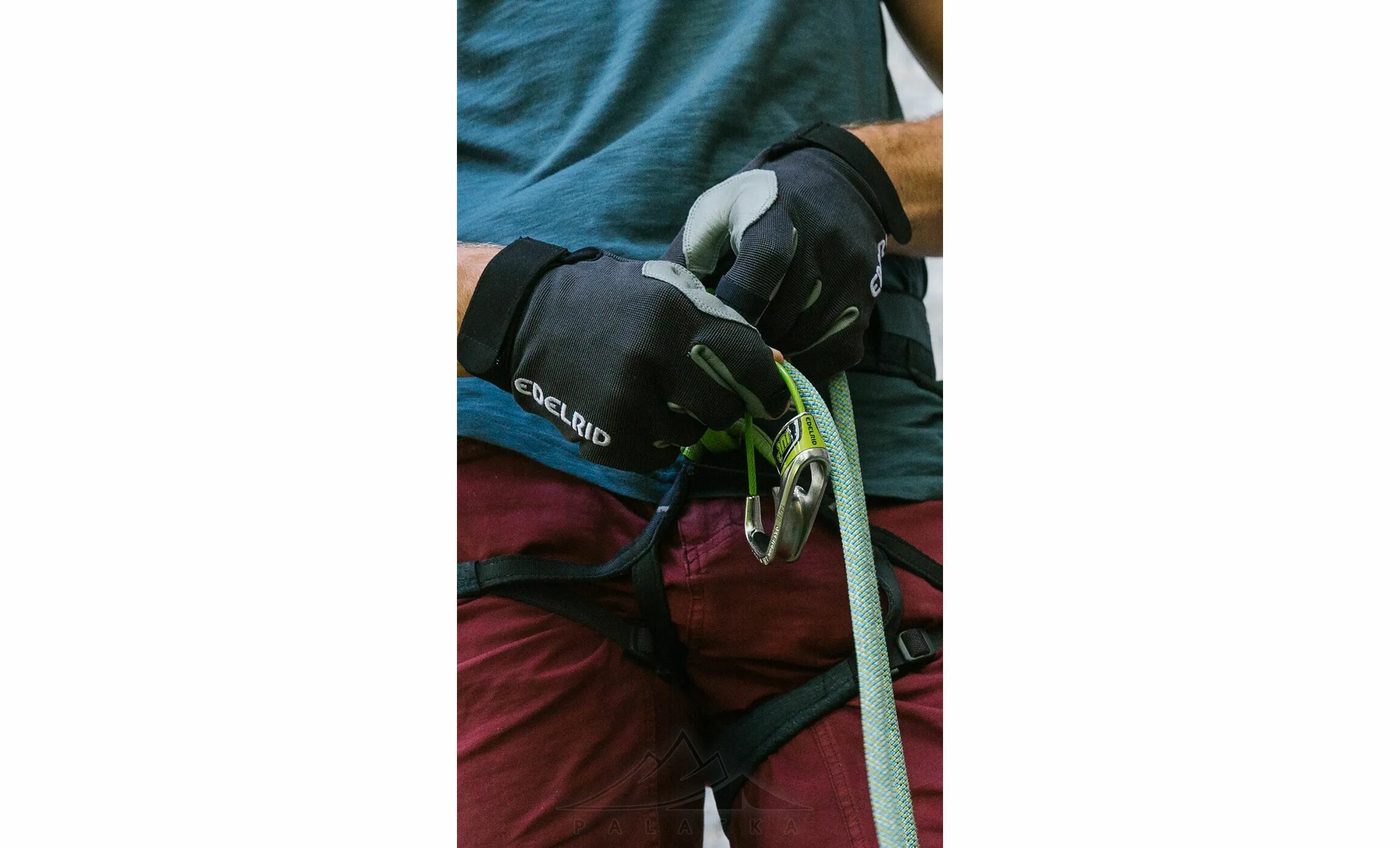 - Завдяки відкритим кінчикам великого та вказівного пальців забезпечують точність і чутливість рухів, що особливо зручно під час муфтування карабінів чи роботи з дрібними елементами спорядження.