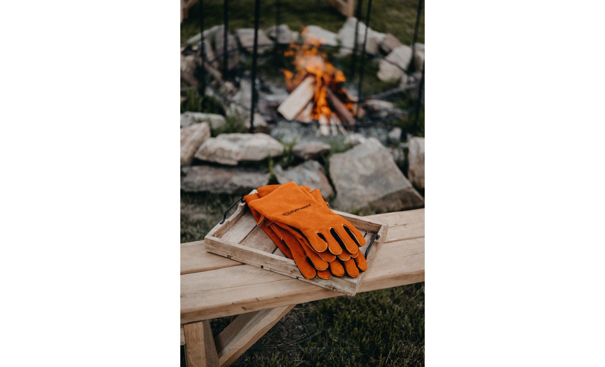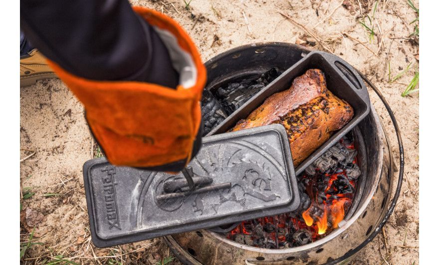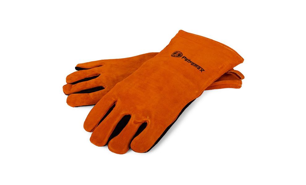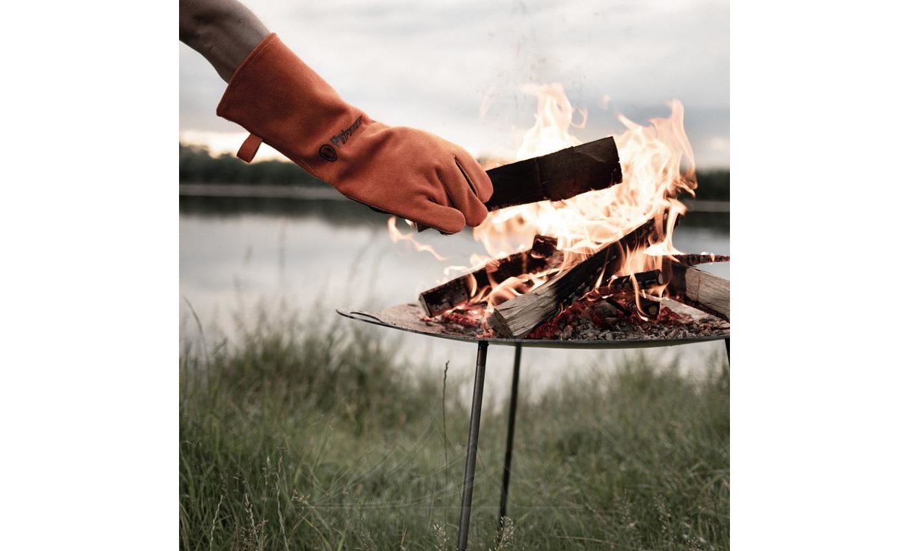 - Цупка шкіряна поверхня гарантує надійне утримання, та дозволяє безпечно підіймати гарячі та палаючі предмети під час приготування на грилі або розведення вогню.