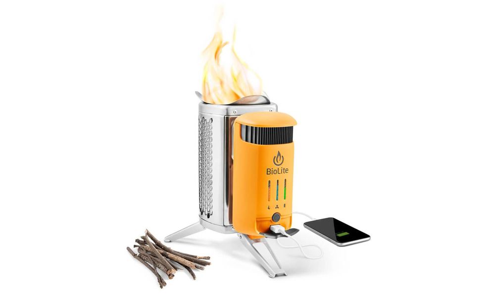 - Пічка не лише дозволяє готувати їжу, а й перетворює тепло в електрику, тому під час роботи можна паралельно підживлювати сумісні USB-пристрої, що особливо корисно в довших виїздах