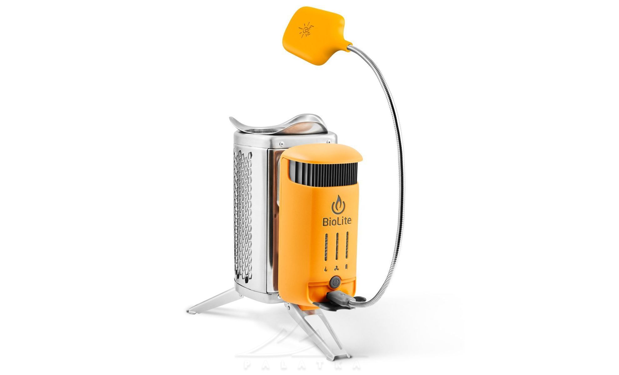 - У комплекті є FlexLight — невеликий LED-світильник на довгій гнучкій ніжці — тож разом із пічкою ви одразу отримуєте корисне світло для вечірнього користування в таборі без потреби докуповувати все окремо