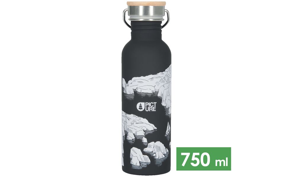 Picture Orgnic Hampton — cталева пляшка з бамбуковою кришкою та яскравим дизайном. Підійде для подорожей, занять спортом, та щоденного використання.