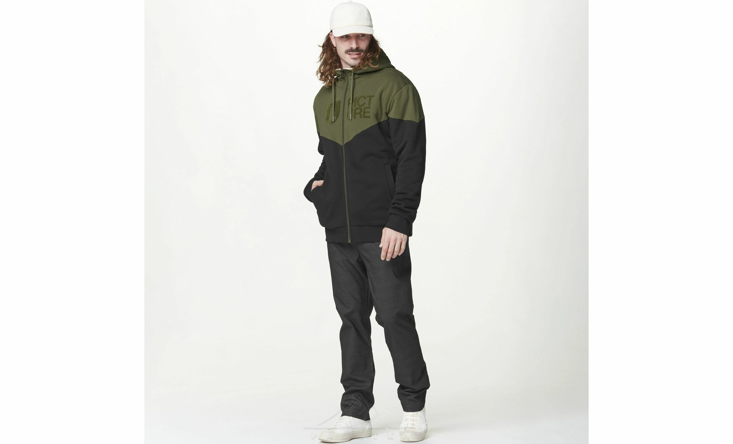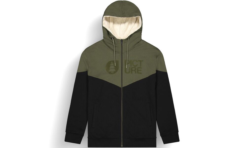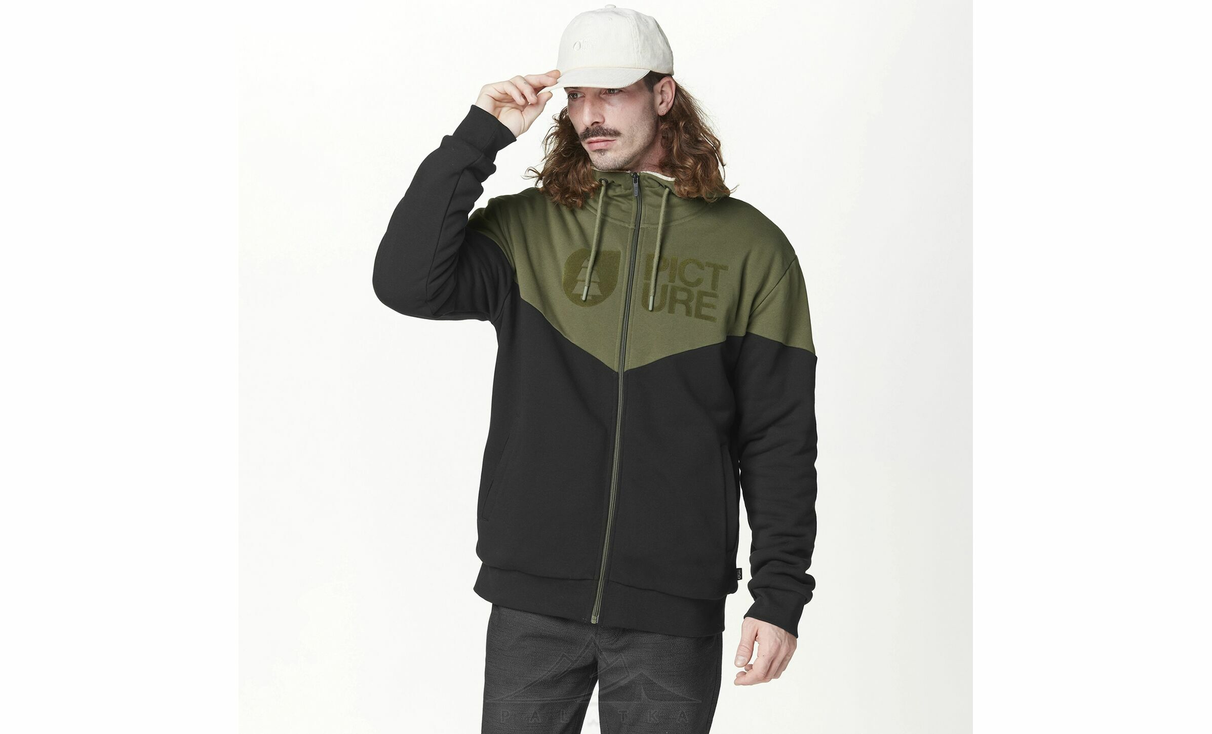 Picture Organic Basement Plush Zip Hoody — чоловіча бавовняна толстовка з утепленим регульованим капюшоном, що поєднує комфорт і практичність. Вона відмінно підходить для міського носіння, подорожей та спокійного відпочинку на природі, слугуючи самостійним шаром у помірну погоду або додатковим утепленням за нижчих температур.